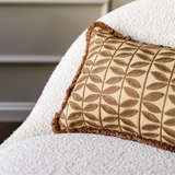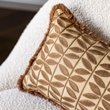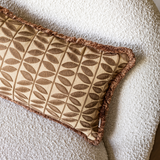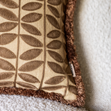 Op zoek naar een kussen dat elegantie en warmte combineert? Bold Beige met Butterfly print heeft een stijlvolle, symmetrische bladprint in donkere beigetint, op een rustige beige basis. De speelse franjes rondom geven het kussen een extra vleugje speelsheid. Met de effen achterkant kun je eenvoudig variëren, afhankelijk van de sfeer die je wilt creëren.