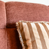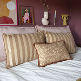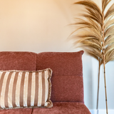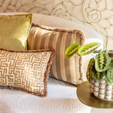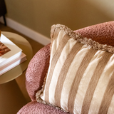 Suchen Sie ein Kissen, das sowohl stilvoll als auch verspielt ist? Dann ist „Bold Beige“ mit seinem schönen Streifenmuster und den dekorativen Fransen die perfekte Wahl. Die sanften Beigetöne sorgen für Ruhe, während das verspielte Design Ihrem Interieur einen Hauch von Flair verleiht. Ein Bonus: Die Rückseite ist einfarbig, sodass Sie das Kissen dezent einsetzen können. Super vielseitig und ein echter Stimmungsmacher!