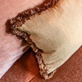 Diese Kissen sind nicht nur stylisch, sondern auch qualitativ hochwertig. Das rosa Kissen ist aus nachhaltiger Baumwolle gefertigt und bietet einen dezent luxuriösen Look. Das beige Kissen ist mit einem eleganten Aufdruck und verspielten Fransen versehen, die Ihrem Interieur einen verspielten Akzent verleihen. Die hochwertigen Materialien verleihen beiden Kissen eine weiche und angenehme Haptik.