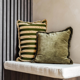 Olive Oasis Dekokissen (Streifen mit Fransen) – 40 x 60 cm