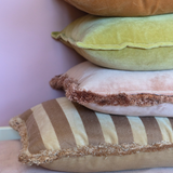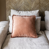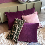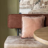 Pretty in Pink vereint Romantik und Ruhe. Die sanfte, kräftige Farbe lässt sich gut mit anderen neutralen Farben kombinieren, bildet aber auch einen schönen Kontrast zu natürlichen Materialien wie Holz, Leinen oder Wolle. Die Fransen verleihen dem Kissen einen lässigen, unkonventionellen Touch, ohne zu überladen zu wirken.