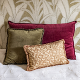– Bold Beige (30 x 50 cm): rechteckiges Kissen in warmem Beige mit dezentem Muster und Fransen