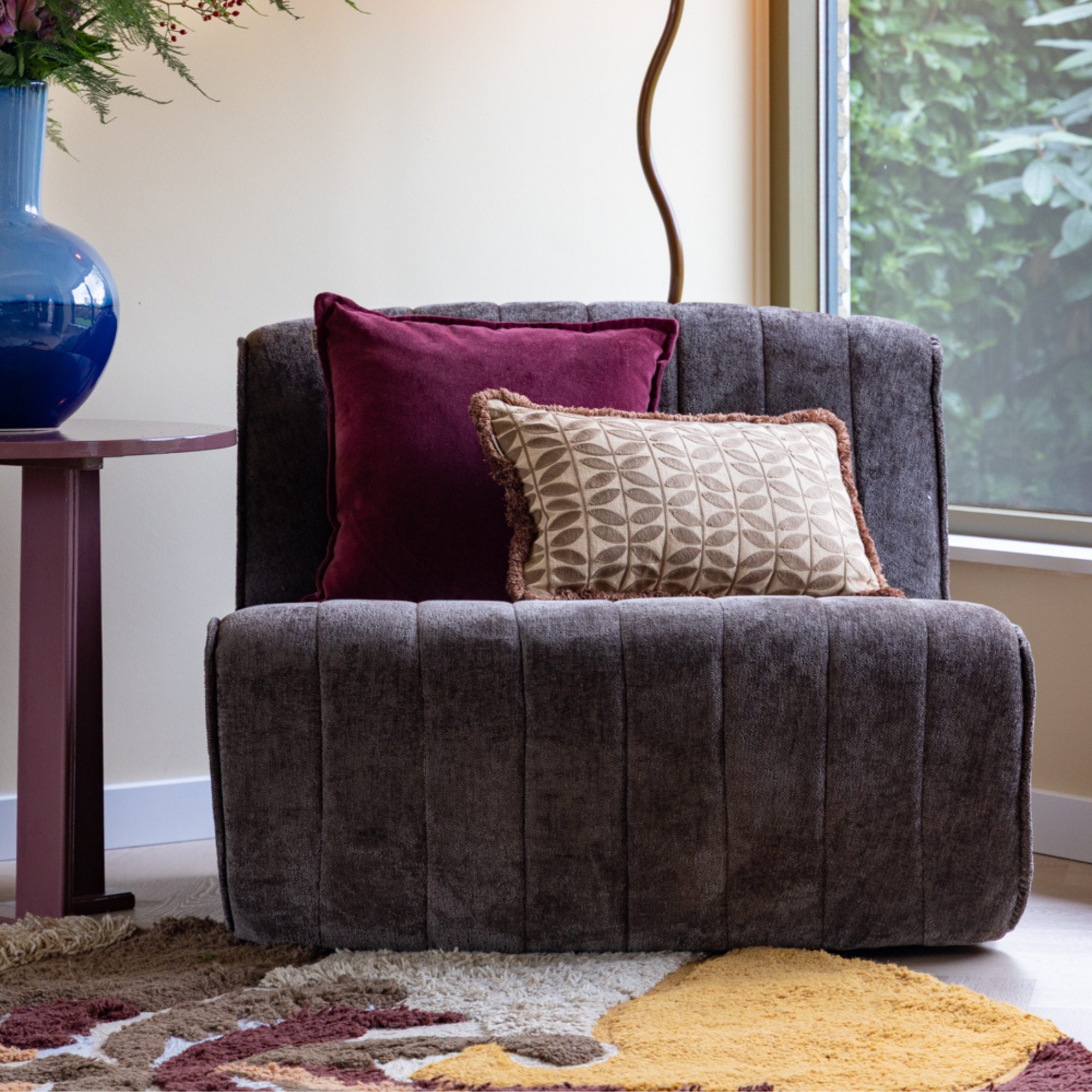 De kussens in de Sia-set zijn gemaakt van hoogwaardige materialen en voelen heerlijk zacht aan. Het effen mauvekussen biedt een serene basis, terwijl het beige kussen met butterfly-print en franjes diepte en visuele elegantie toevoegt. De combinatie van zachte tinten en texturen maakt deze set geschikt voor uiteenlopende interieurstijlen, van modern en Japandi tot klassiek en eclectisch.