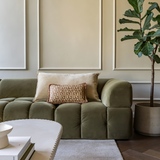 Samen creëren ze een harmonieus geheel: het XL kussen straalt rust en eenvoud uit, terwijl de print en franjes van Bold Beige zorgen voor karakter en verfijning.