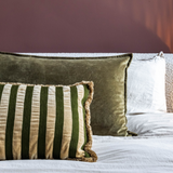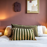 Olive Oasis decorative cushion (stripes with fringes) – 40 x 60 cm