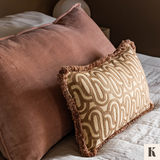 Bold Beige (30 x 50 cm): een speels kussen met swirlprint en franjes. Het handgemaakte ontwerp zorgt voor extra textuur en een stijlvol accent.
