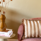 Bold Beige (40 x 60 cm) kussen met subtiel gestreept patroon en franjes, voegt een vleug karakter toe