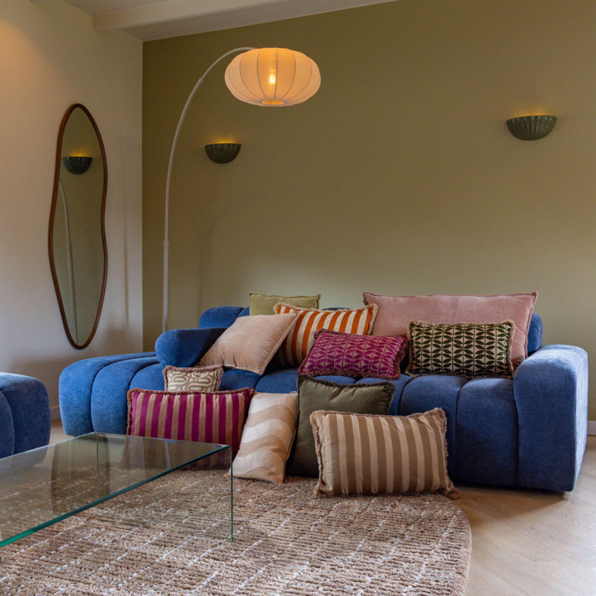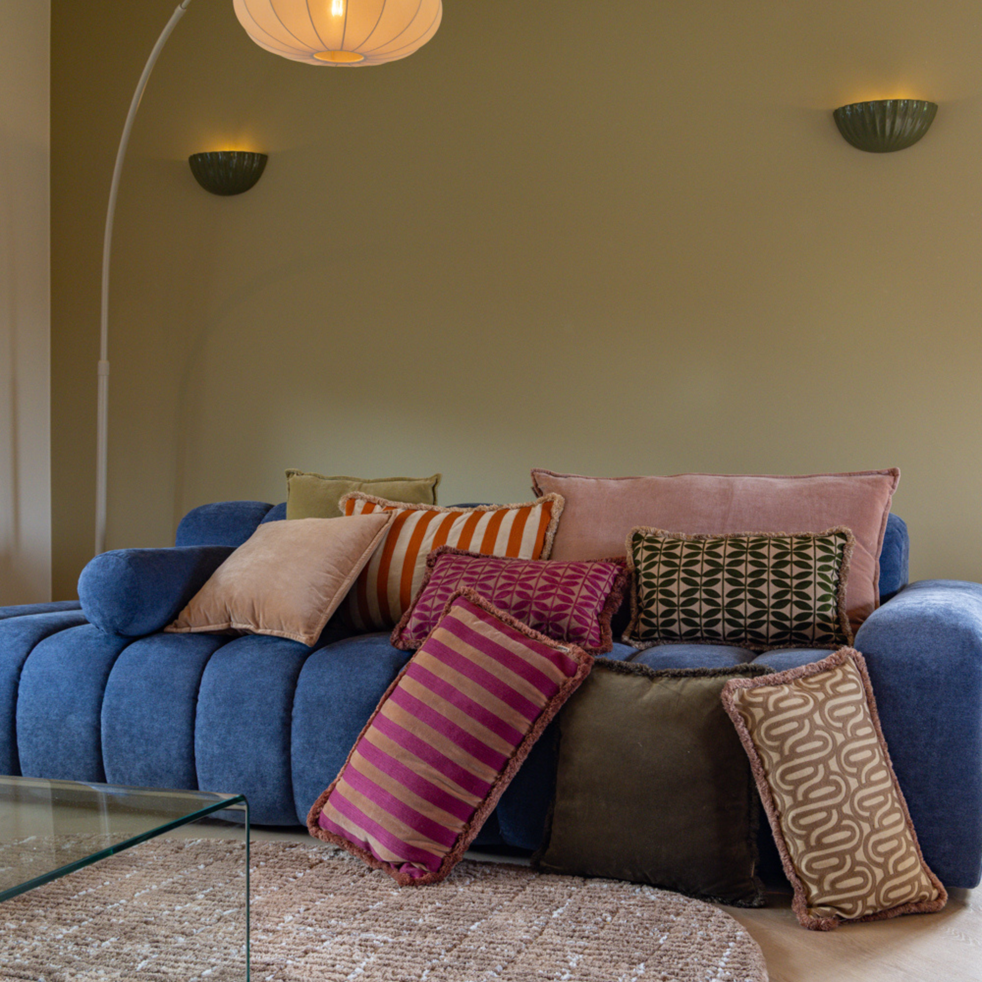 Pretty in Pink is one of those cushions that immediately stands out without being overpowering. That soft pink shade works perfectly with light colors for a fresh look, but also looks stunning with warm earth tones. Its 50 x 90 cm size makes it extra comfortable to lean against and creates a playful contrast with smaller cushions.