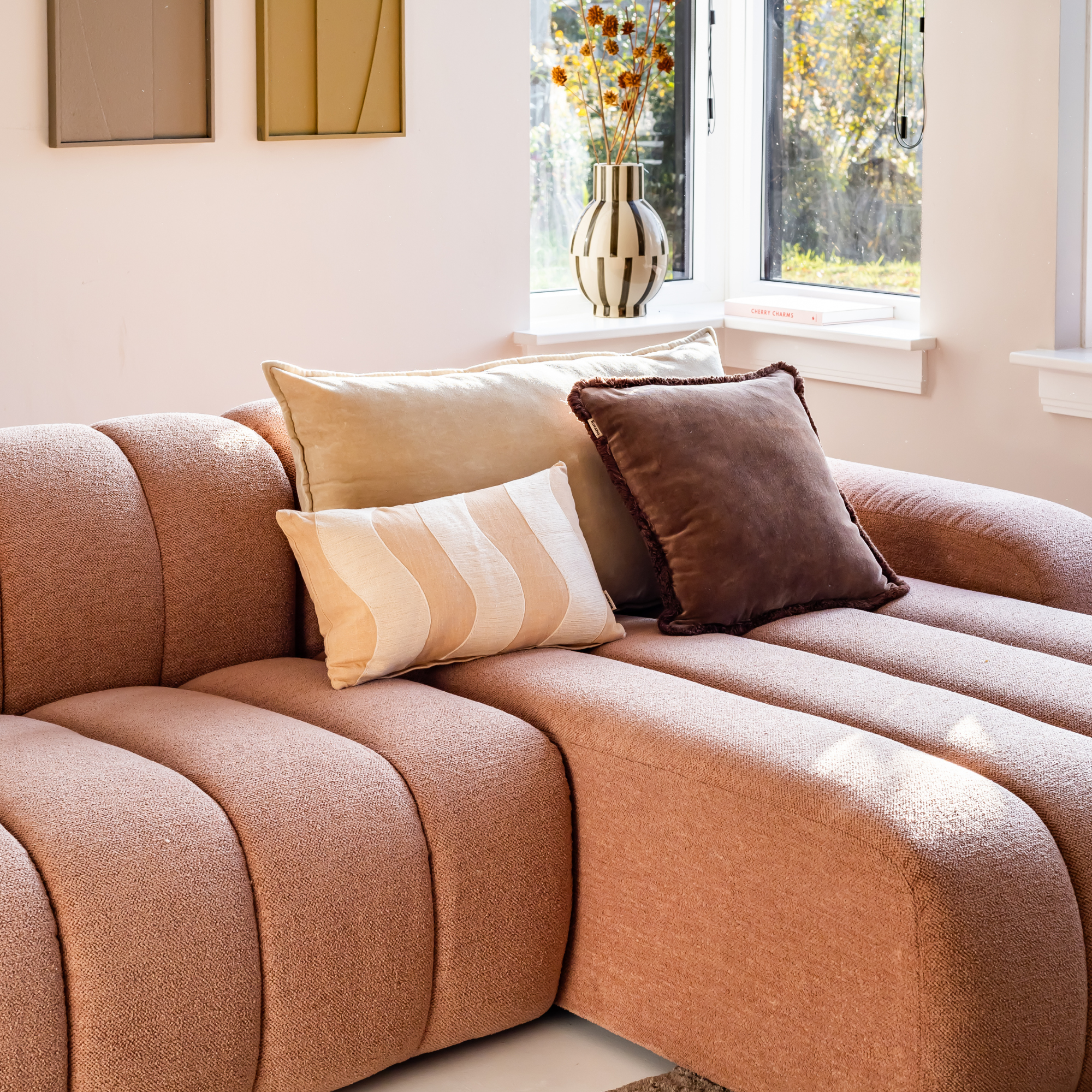 Chocolate Chic strahlt Wärme und Harmonie aus. Die tiefe, satte Farbe bildet eine solide Basis und lässt sich mühelos mit Beige, Creme, Mauve und anderen Naturtönen kombinieren. Die Fransen verleihen dem Kissen Struktur und eine dezente, dekorative Note, ohne dabei aufdringlich zu wirken.
