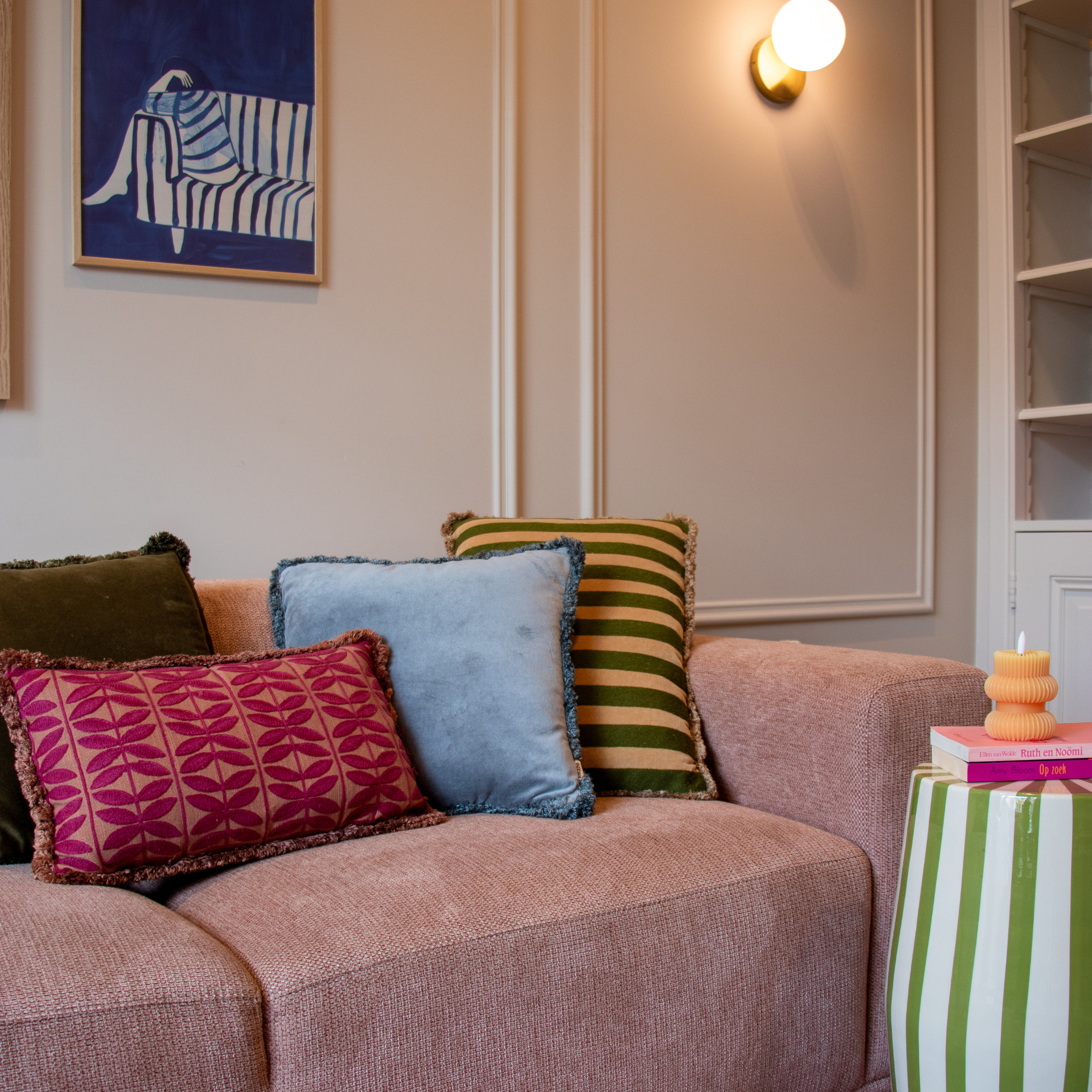 The fringes give the cushion a playful and luxurious touch. The 30 x 50 cm size is perfect for pairing with larger cushions. Consider soft solid shades or colors in the same color family for an extra statement.