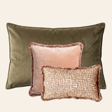 Want to create a powerful yet soft look in your interior? The Fay decorative cushion set combines the best of both worlds. Deep olive green, powder pink, and beige create a surprisingly harmonious combination that exudes warmth, contrast, and elegance. Perfect for a stylish setting with a playful twist.