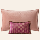 Together they form a harmonious whole: the XL cushion brings peace and elegance, while the print and fringes of Blushed Berry give a surprising and lively twist.