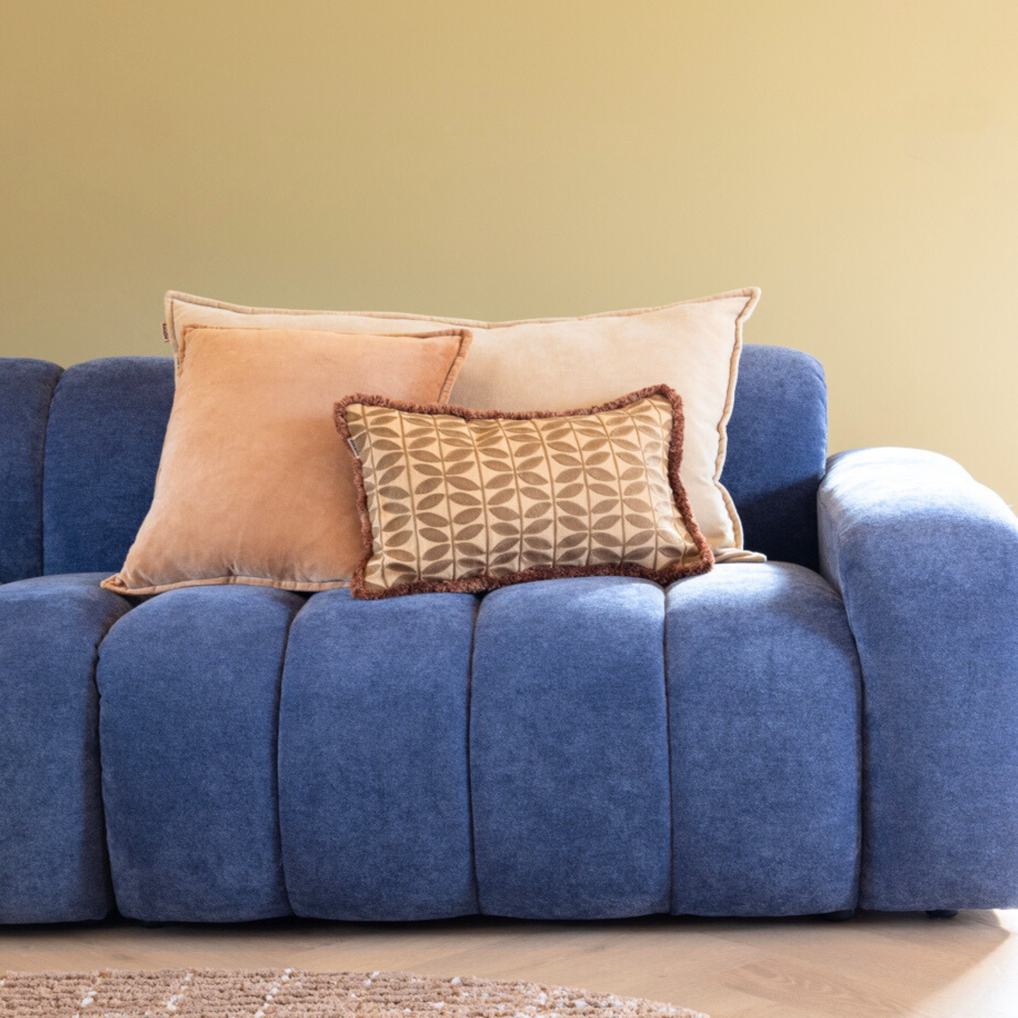Eva brengt warmte, karakter en elegantie in je interieur. Butter Beige vormt een rustige basis, Caramel Crunch voegt een zachte, karamelkleurige toon toe en Bold Beige met subtiele butterfly-print en franjes zorgt voor een speels accent. De katoenen stof voelt zacht en natuurlijk aan, en de mix van formaten maakt deze set ideaal om te combineren met andere kussens uit de Kotabo-collectie. Een veelzijdige en tijdloze set voor elk seizoen.