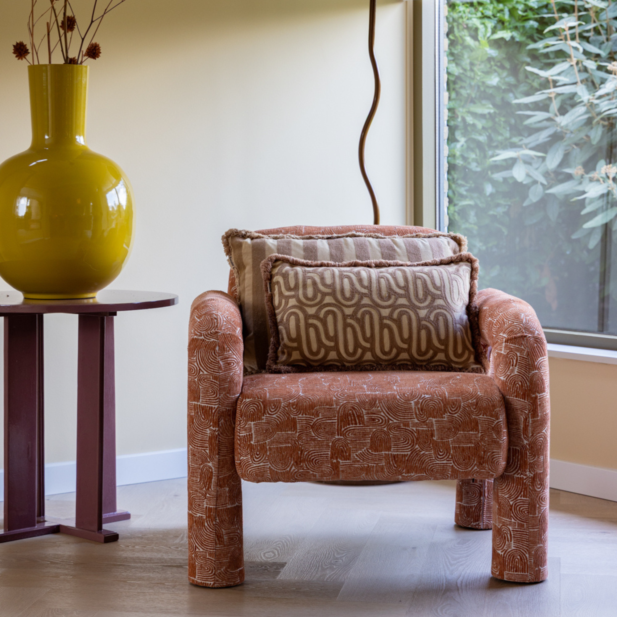 De kussens uit de Nori-set zijn vervaardigd van hoogwaardige materialen en voelen heerlijk zacht aan. De combinatie van franjes, strepen en swirl-print geeft het geheel een verfijnde, ambachtelijke uitstraling. Dankzij de duurzame afwerking blijven de stoffen mooi in vorm en kleur, ook bij dagelijks gebruik.