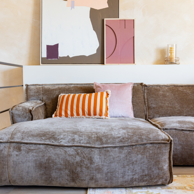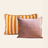 Das Iva Set vereint Wärme und Weichheit in einer verspielten Farbkombination. Das Set besteht aus dem rechteckigen Kissen Oatmeal Orange (40 x 60 cm) mit Streifen und Fransen und dem quadratischen Kissen Pretty in Pink (45 x 45 cm). Der warme Orange-Beige-Ton sorgt für Tiefe, während das rosa Kissen einen frischen und sanften Touch hinzufügt.