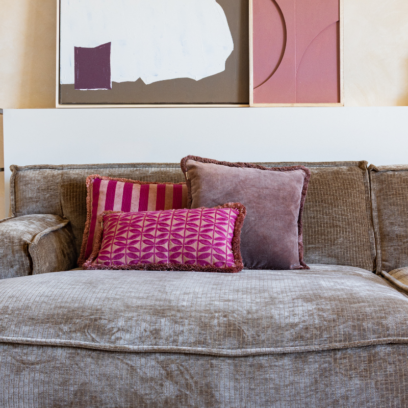Das Minre-Set kombiniert warme Brauntöne mit einem verspielten beerenfarbenen Akzent. Das Set besteht aus dem quadratischen Kissen Chocolate Chic (45 x 45 cm) mit Fransen, dem rechteckigen Kissen Blushed Berry (40 x 60 cm) mit Streifen und Fransen und dem kleineren rechteckigen Kissen Blushed Berry (30 x 50 cm) mit Muster und Fransen. Zusammen sorgen sie für ein reiches und stimmungsvolles Ambiente auf Ihrer Couch, Ihrem Sessel oder Ihrem Bett.
