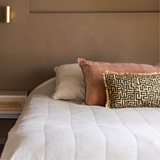 Samen creëren ze een harmonieus geheel: het XL kussen straalt rust en eenvoud uit, terwijl de print en franjes van Olive Oasis zorgen voor karakter en verfijning.