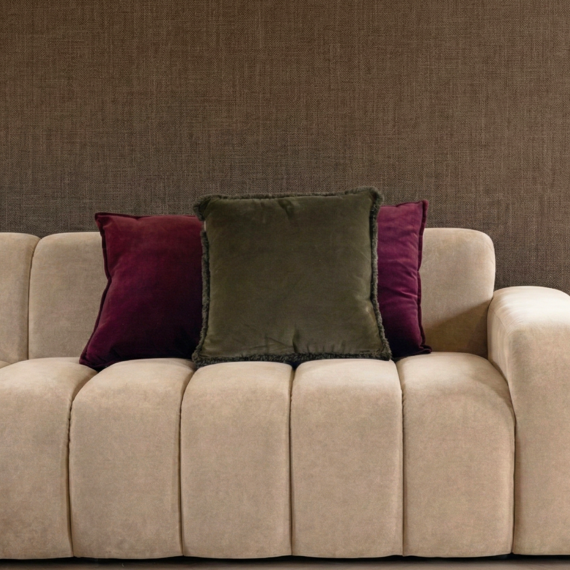 De Juna set combineert het XL-kussen Magical Mauve (50 x 90 cm) met het vierkante kussen Olive Oasis (45 x 45 cm) met franjes. De diepe mauvetint vormt een rustige basis, terwijl het olijfgroen zorgt voor contrast en een verfijnd accent. Samen creëren de kussens een gebalanceerde en tijdloze uitstraling voor bank, fauteuil of bed.