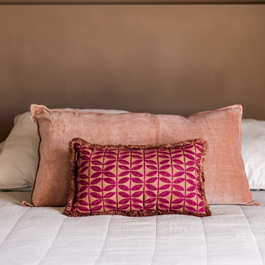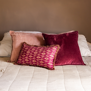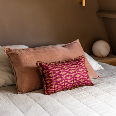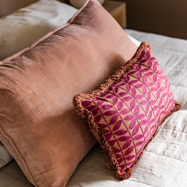 De franjes geven het kussen een speels en luxe accent. De maat van 30 x 50 cm is perfect om te combineren met grotere kussens. Denk aan zachte effen tinten of kleuren in dezelfde kleurfamilie, voor een extra statement.
