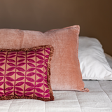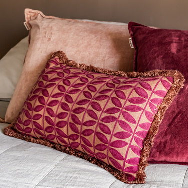 PRE-ORDER Kotabo sierkussen met butterfly print en franjes – 30 x 50 cm – Blushed berry