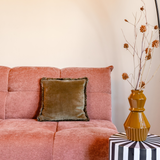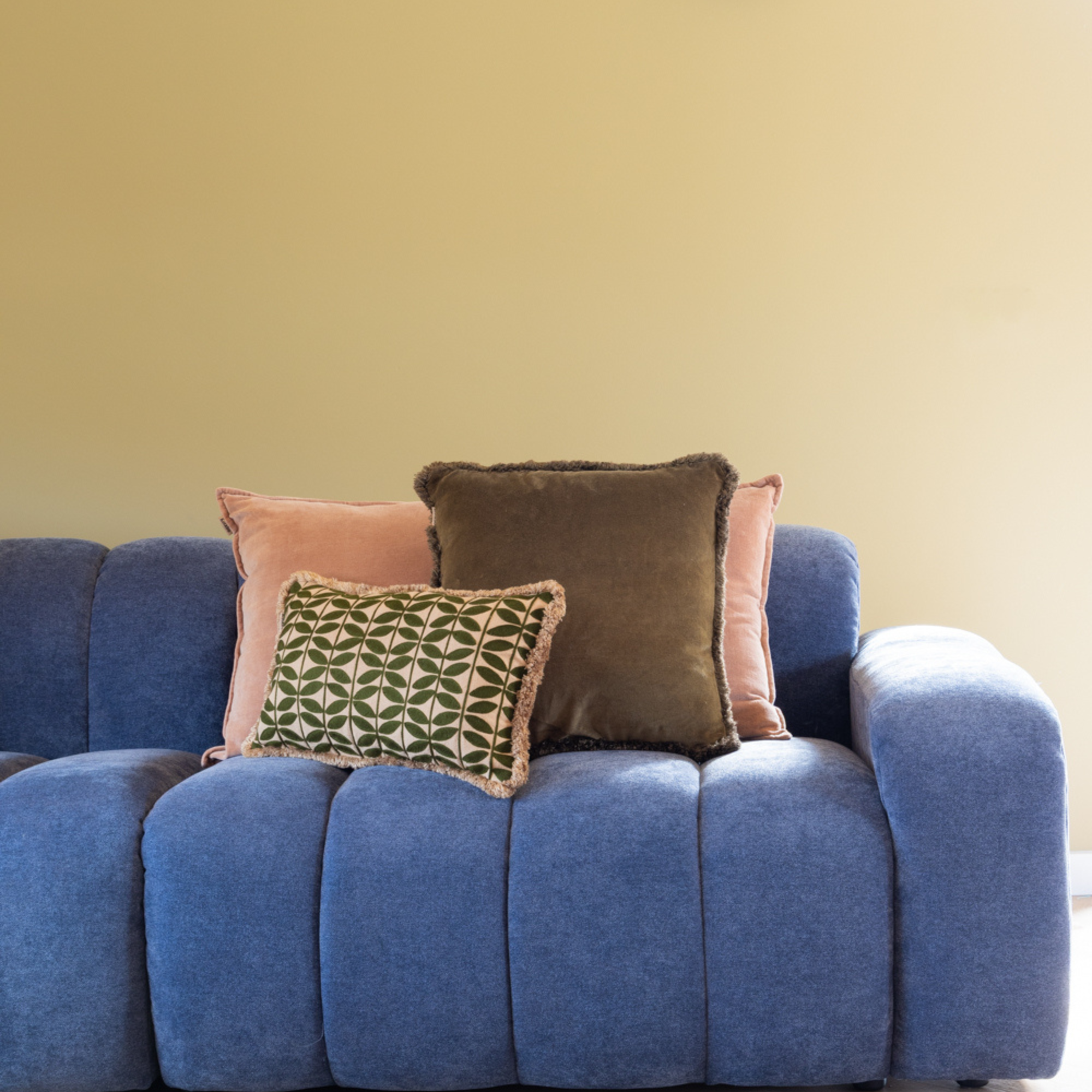 Olive Oasis is een echte blikvanger en toch heerlijk veelzijdig. De warme groene kleur voelt natuurlijk aan en laat zich makkelijk combineren met andere kleuren en materialen. Of je nu kiest voor een botanische stijl of een warme, landelijke look, dit kussen past perfect.
