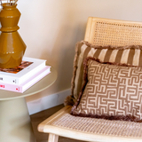 Ben je op zoek naar rust en warmte in je interieur? Sierkussenset Noé is precies wat je nodig hebt. Deze set combineert twee beige kussens met subtiele prints en speelse franjes voor een tijdloze, natuurlijke look. Perfect voor een sfeervolle zithoek of een rustige slaapkamer.