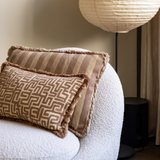 Sierkussen Bold Beige (print met franjes) – 30 x 50 cm