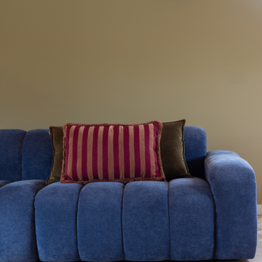 De Eliza set brengt natuurlijke rust en een verfijnd kleuraccent samen. Het XL-kussen in Olive Oasis van 50 x 90 cm vormt een kalme, tijdloze basis in een zachte olijfgroene tint. Het rechthoekige kussen in Blushed Berry van 40 x 60 cm voegt warmte en karakter toe met strepen en franjes. Samen creëren deze kussens een elegante en uitnodigende uitstraling voor je bank, fauteuil of bed.